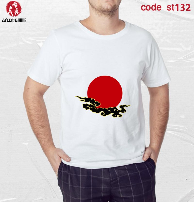 تيشرت أبيض بتصميم علم اليابان (مع غيوم ذهبية)